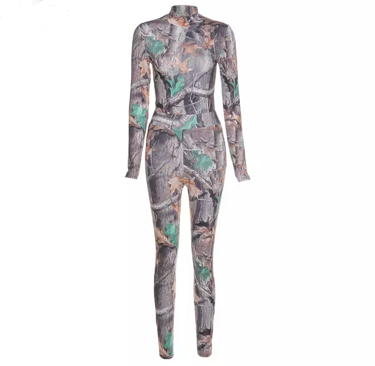 Two piece set body suit and leggings with leave print